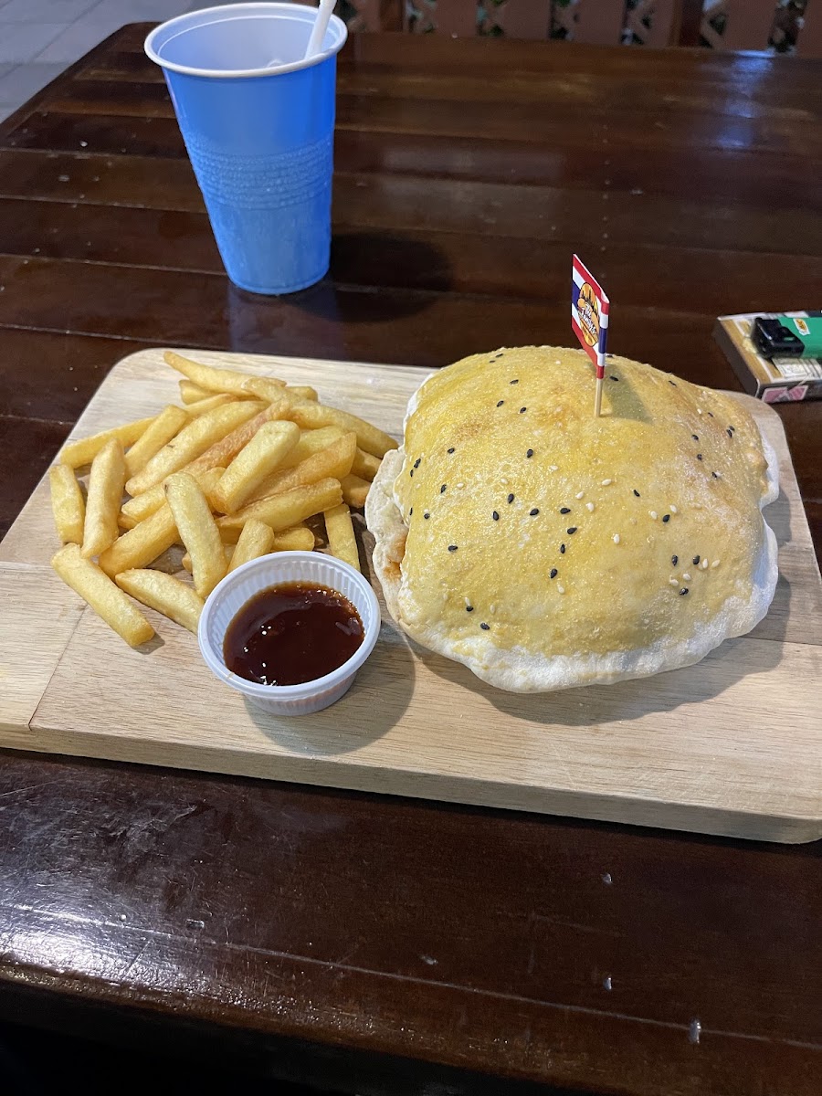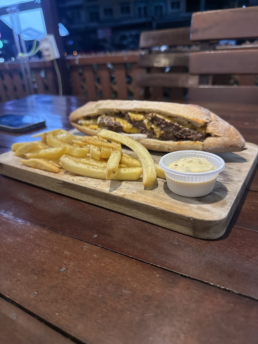 Double cheese burger and fries was yum and good price . Can sit inside or out